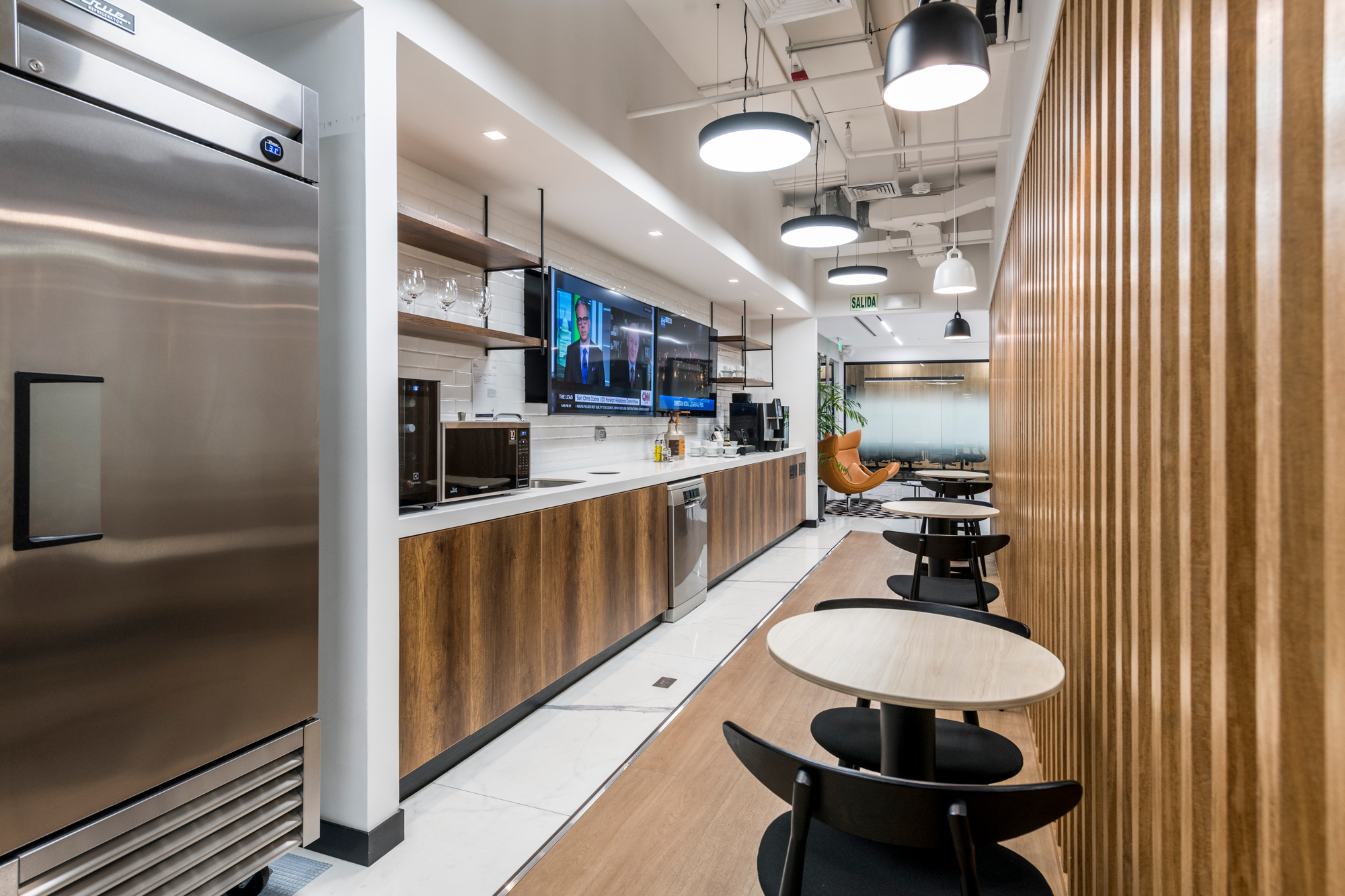 Nuestro directorio ejecutivo se encuentra equipado con un avanzado sistema de videoconferencia híbrida, diseñado para llevar a cabo reuniones más fluidas y naturales, fomentando una interacción genuina y efectiva. En este espacio, sus invitados se sentirán en un ambiente moderno y sumamente profesional.